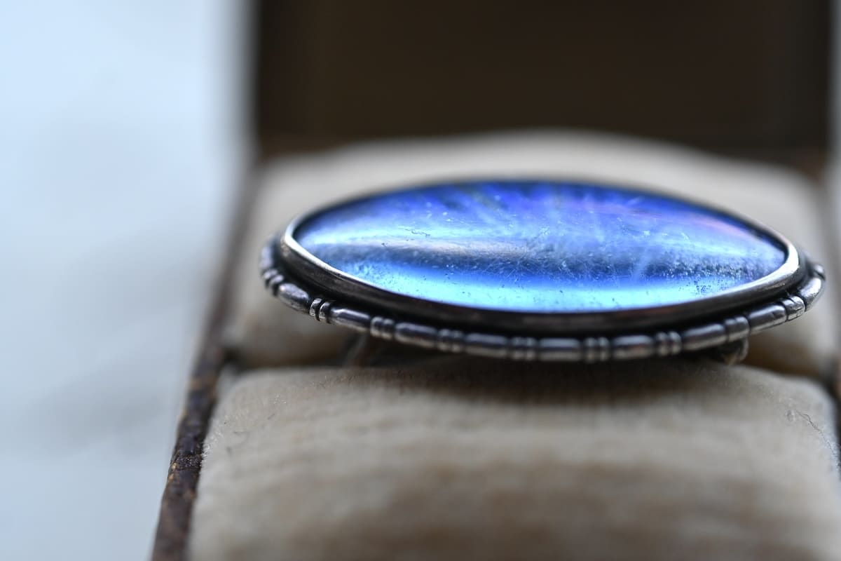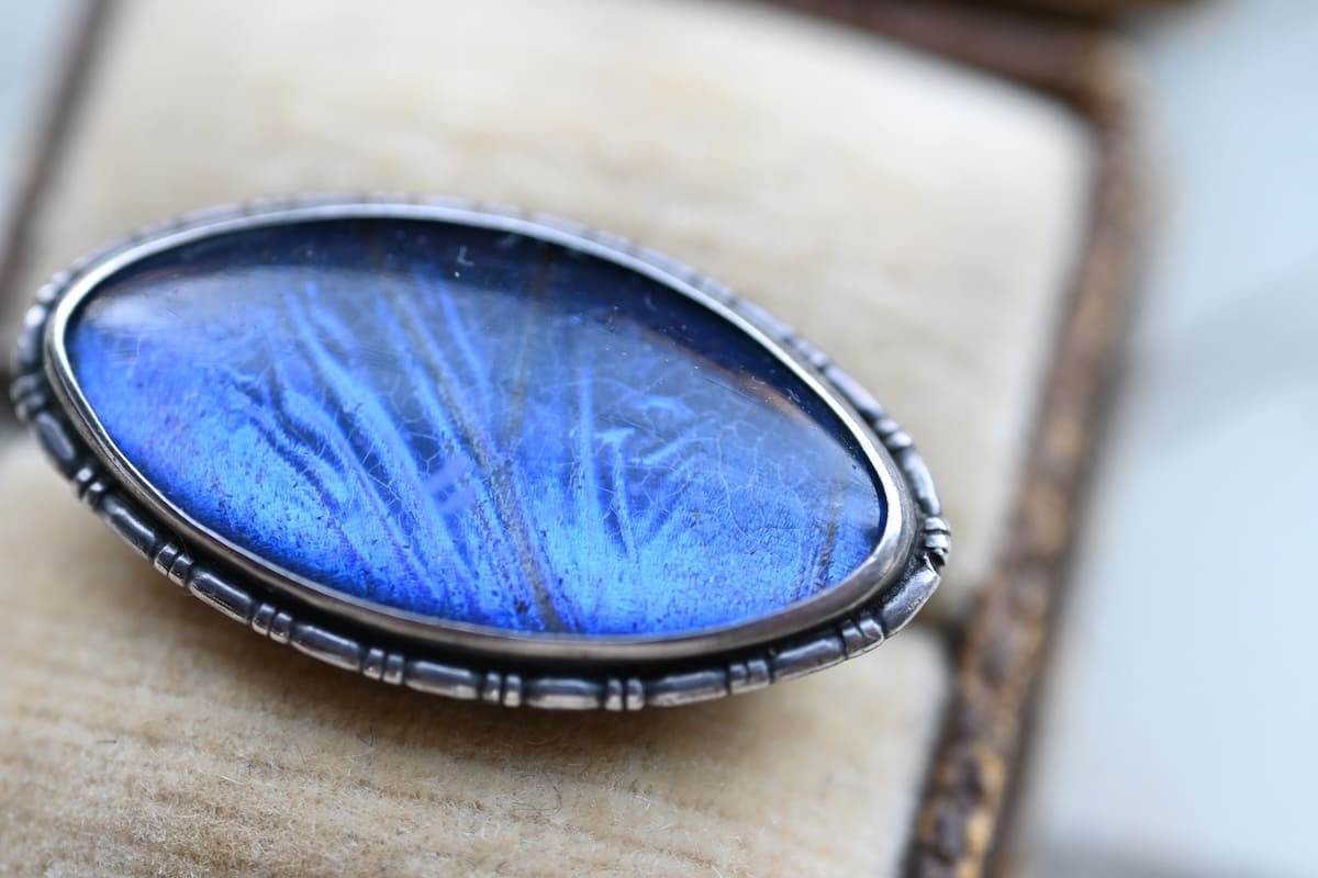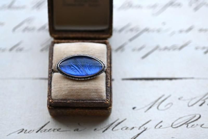 モルフォ蝶は、現在では採取する事が禁じられている為、わずかな期間しか作られなかった、貴重なアンティークジュエリーです。