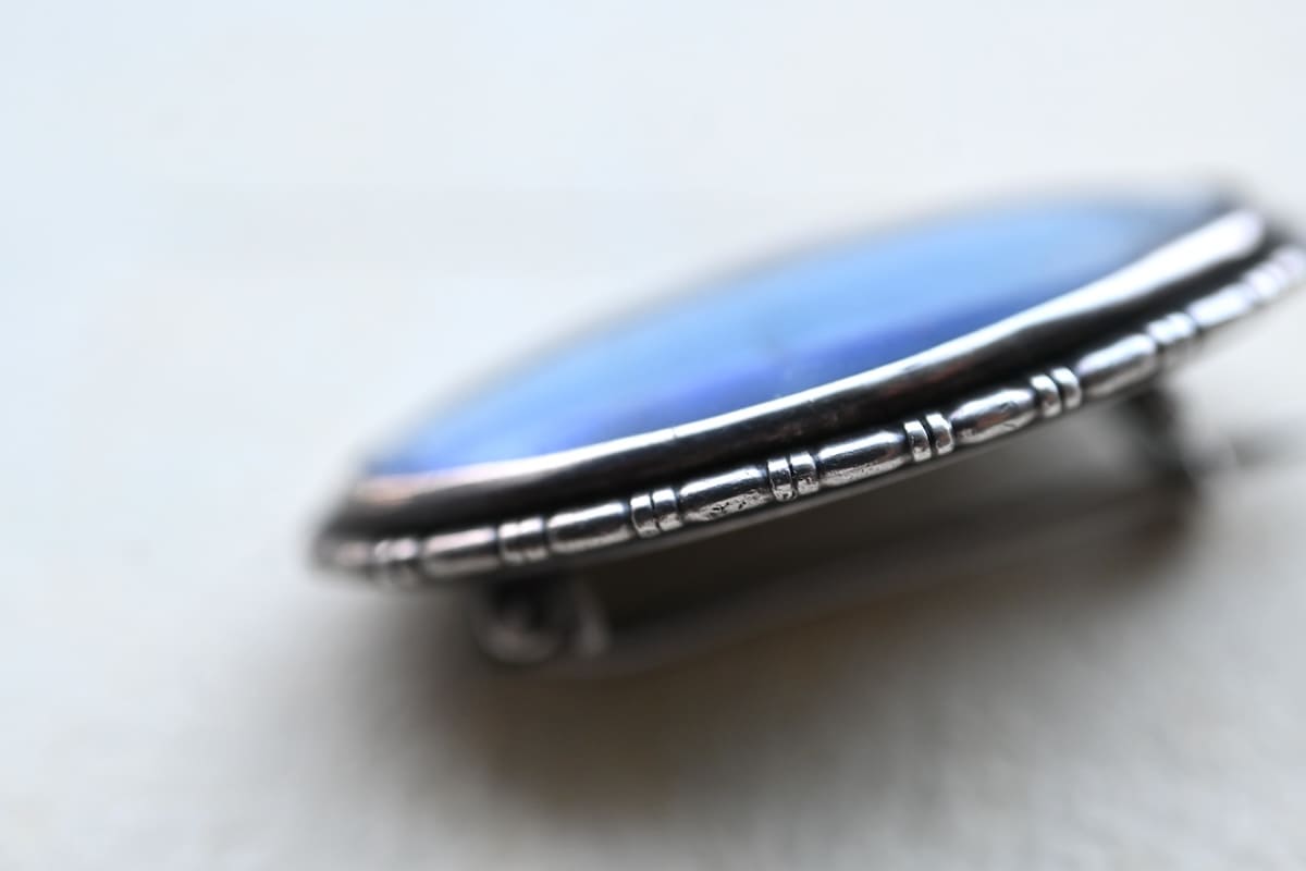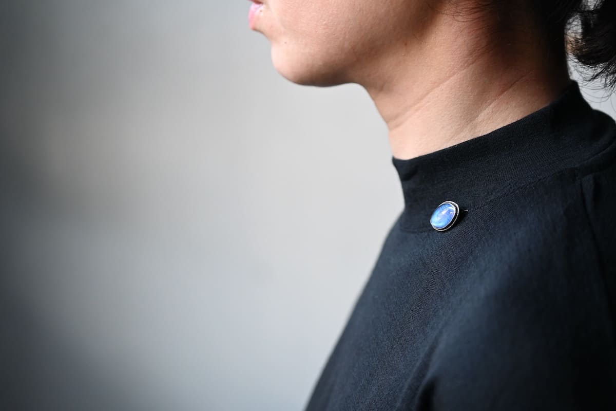 小ぶりなサイズ感で、襟元だけでなくボタンやネックレスのトップのように胸元の中央に身につけても素敵です。