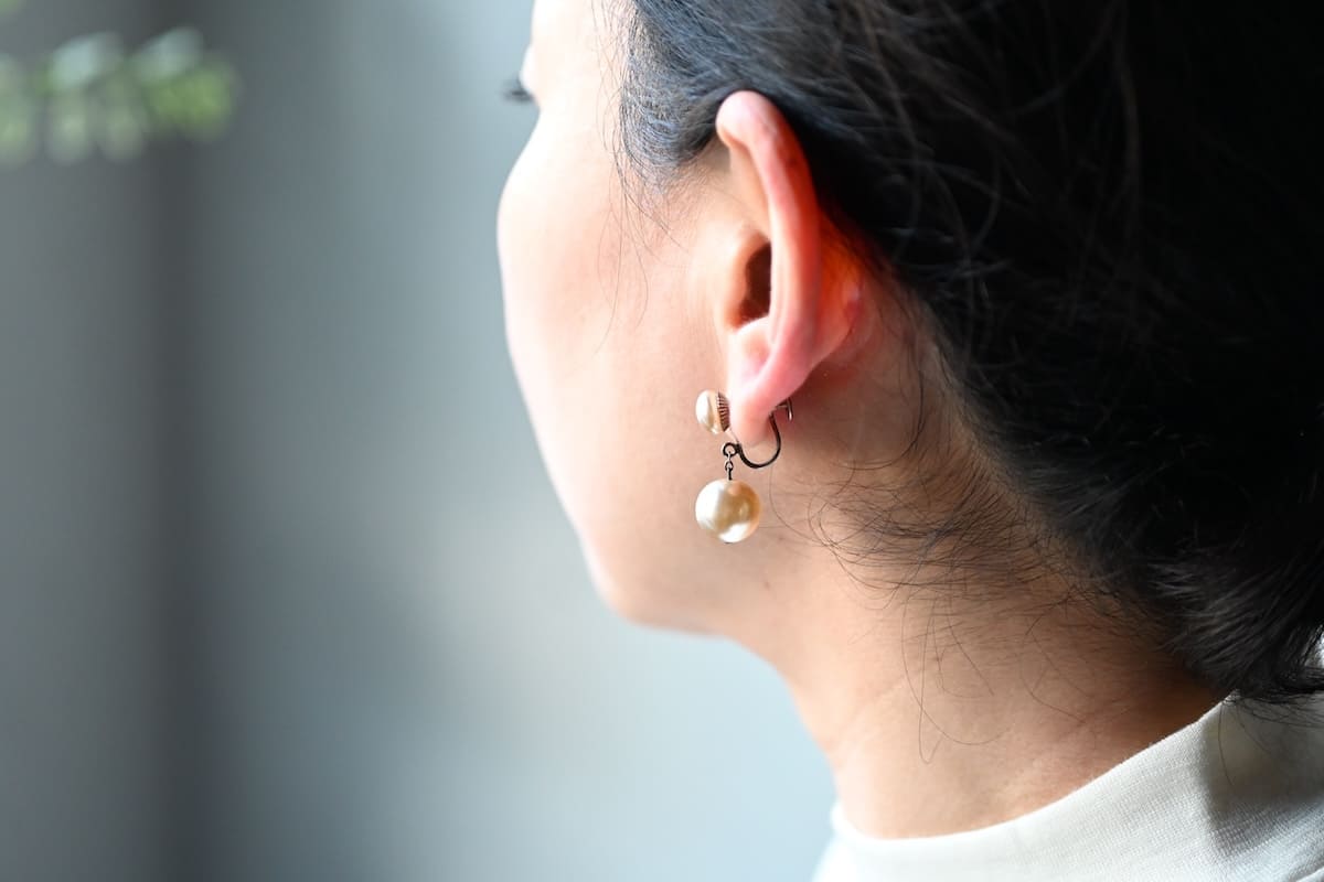 留め具は好みの強度で身につけることのできるスクリュータイプです。