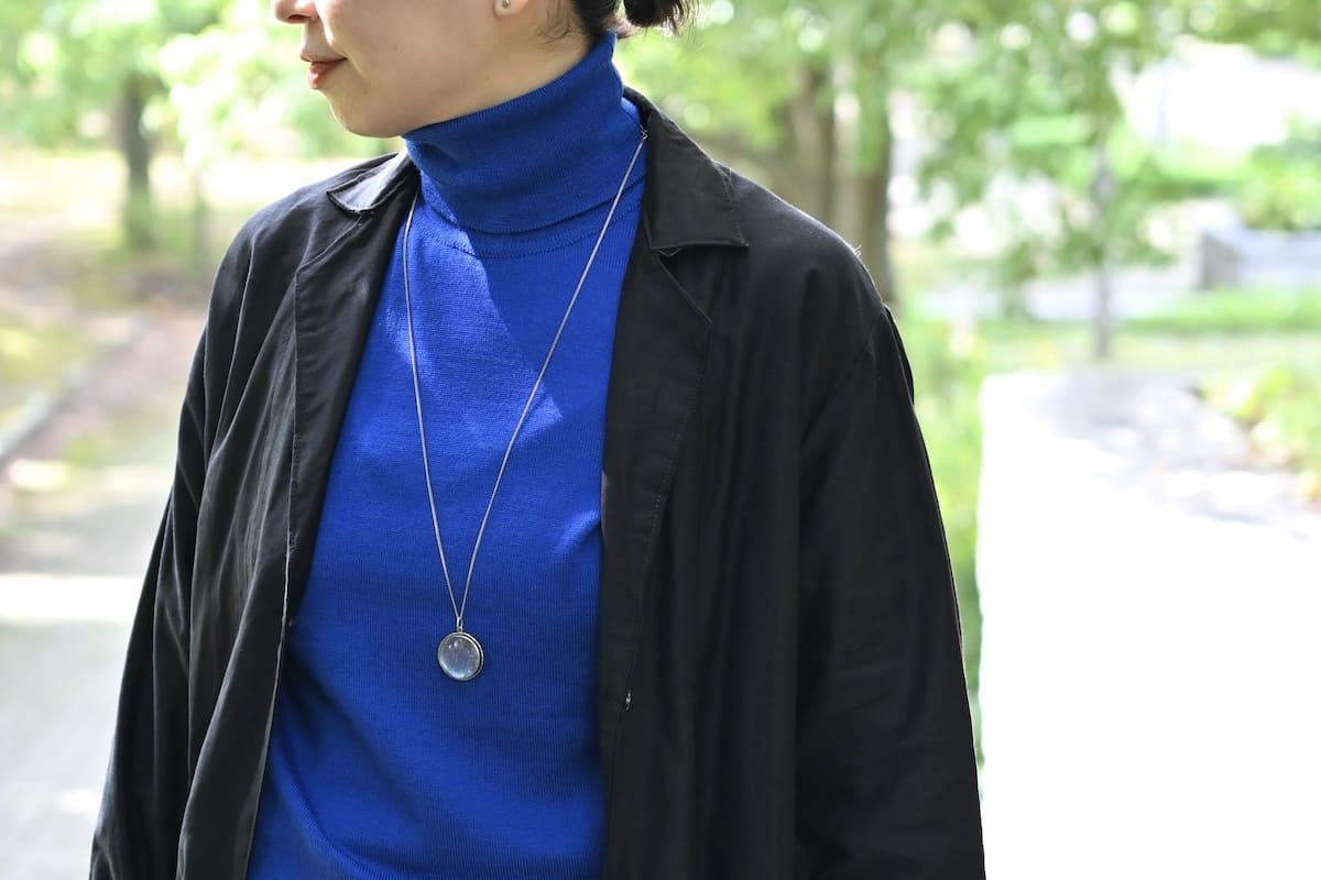 中でもネックレスは、数の出回りの少ない希少なアイテム。天然のマテリアルならではの、ひとつひとつに表情の異なるバタフライウィング。こちらは、目の冴えるような鮮やかなコバルトブルーが、胸元で存在感を放つ、美しい一点です。