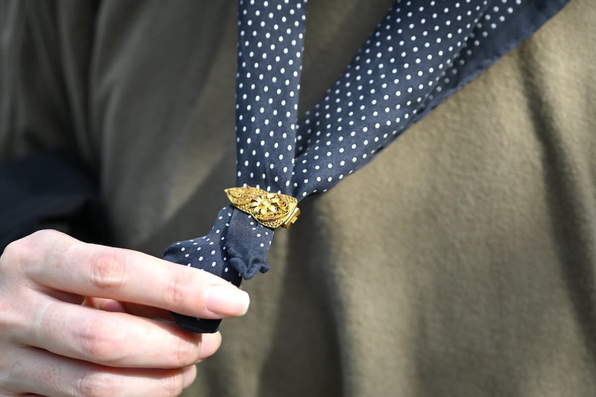 フィリグリーとは、金や銀を、糸のように細くしたものを手作業で巻いたり、ねじったりしながらレースのように模様を作り上げる、原始的で手間のかかる金銀細工の技法の一つ。葉をシャープにしたような歪な形は、襟元に寄り添うように身につけられ、デイリーから様々なシーンでお使いいただけそうです。