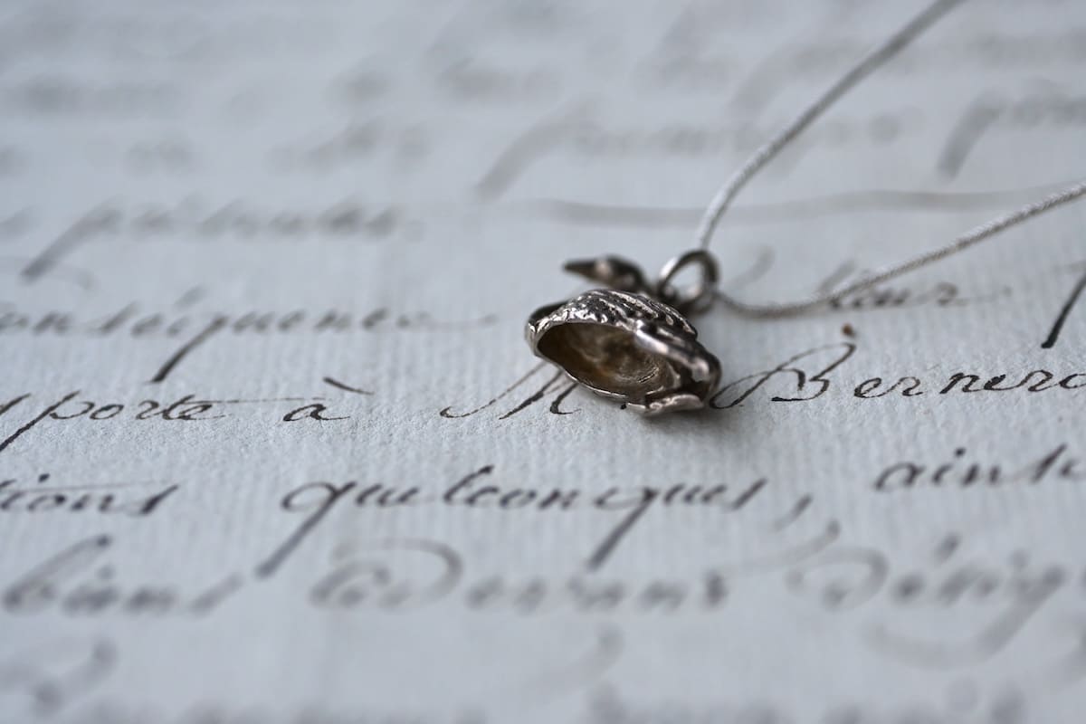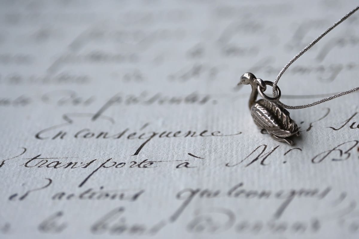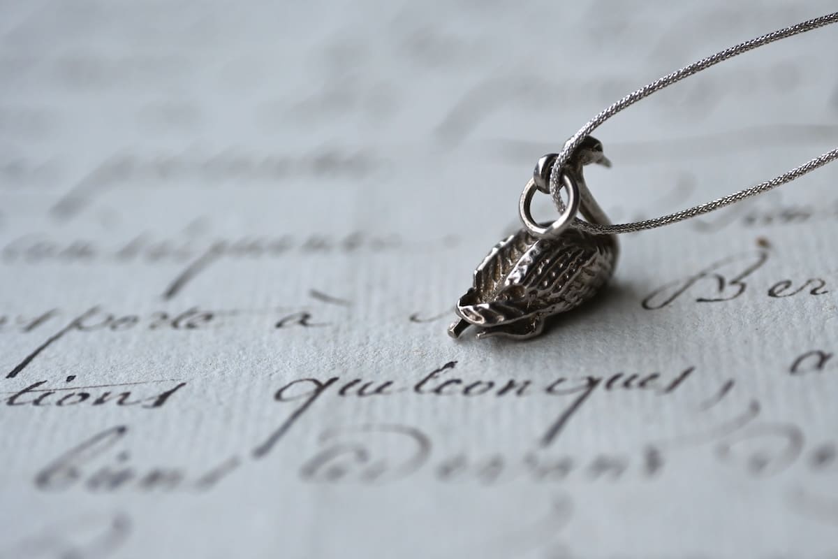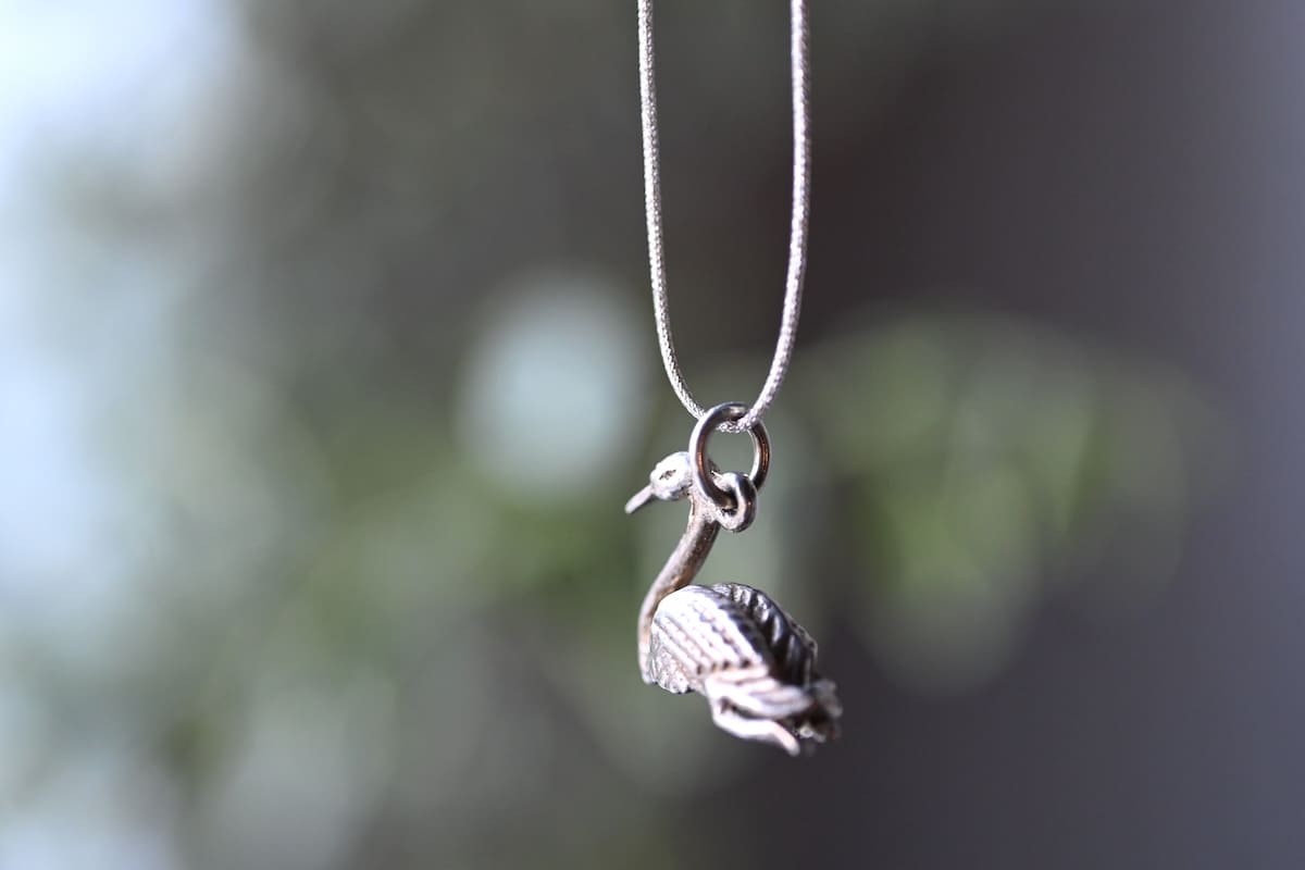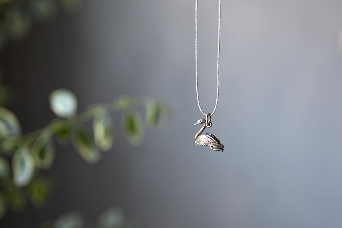 毛並みから足まで忠実に再現された、白鳥のシルバーチャーム。