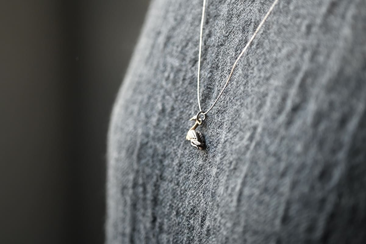 こちらのチャームよりも小さなサイズ感で身につけやすく、他のジュエリーとの重ね付けにもおすすめです。カジュアルなシーンでデイリーにお使いいただけそうです。