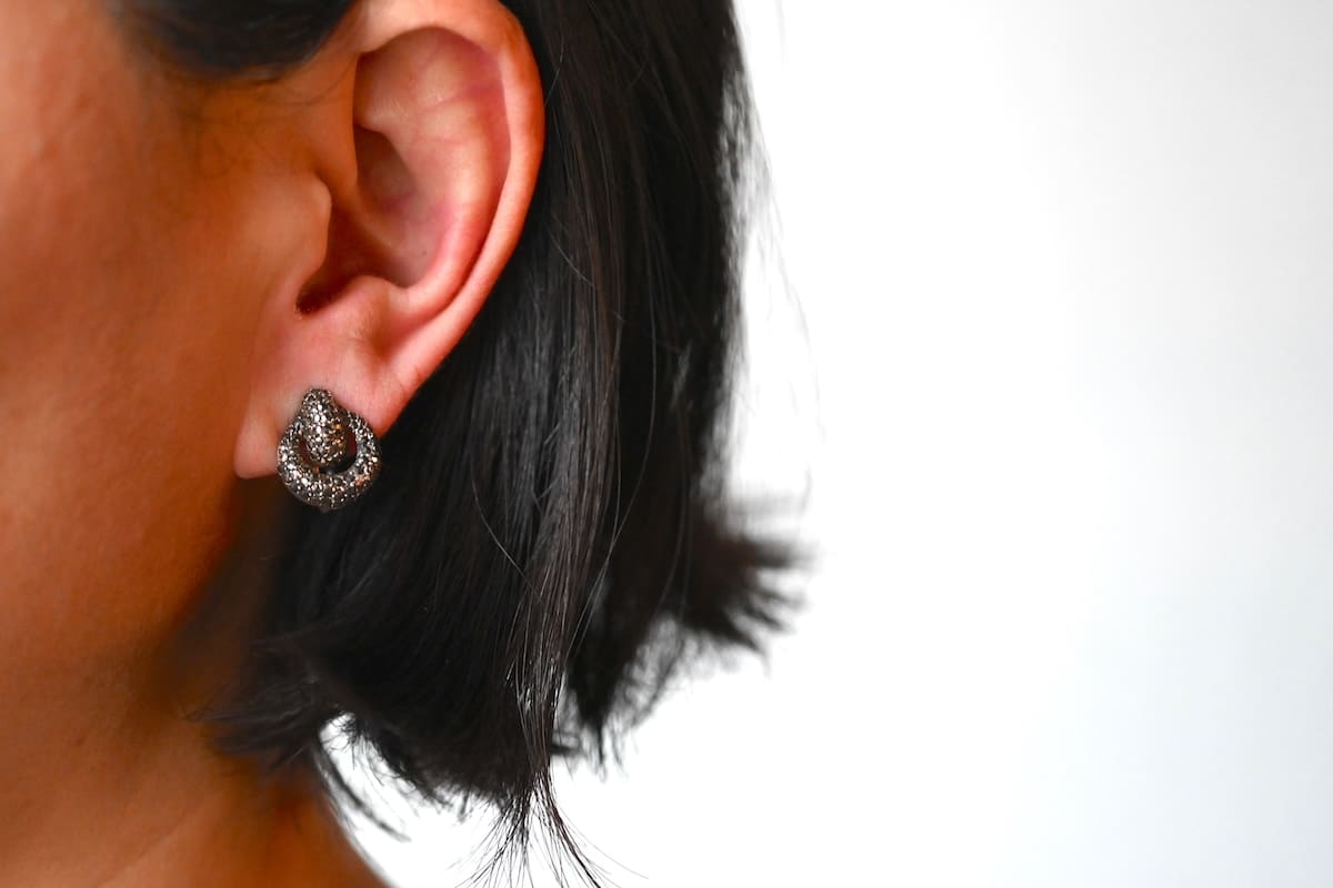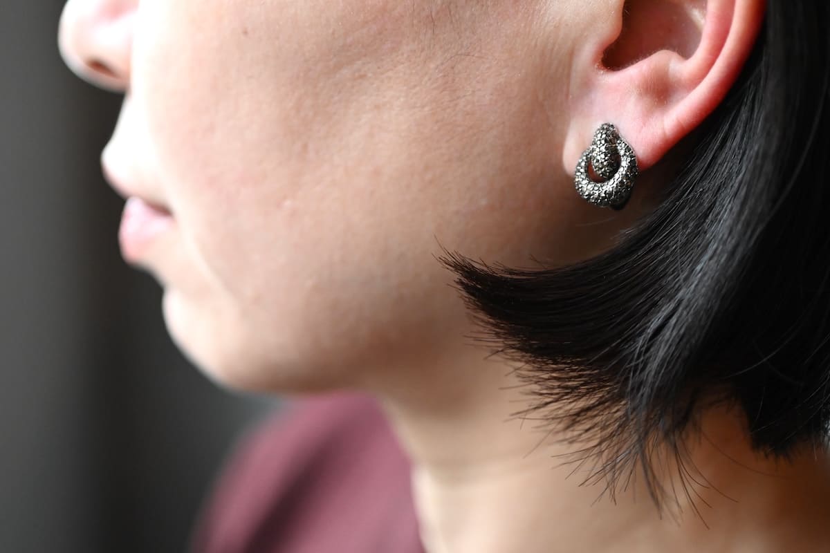 丸みのあるフォルムが女性らしく、優美な雰囲気のイヤリング。