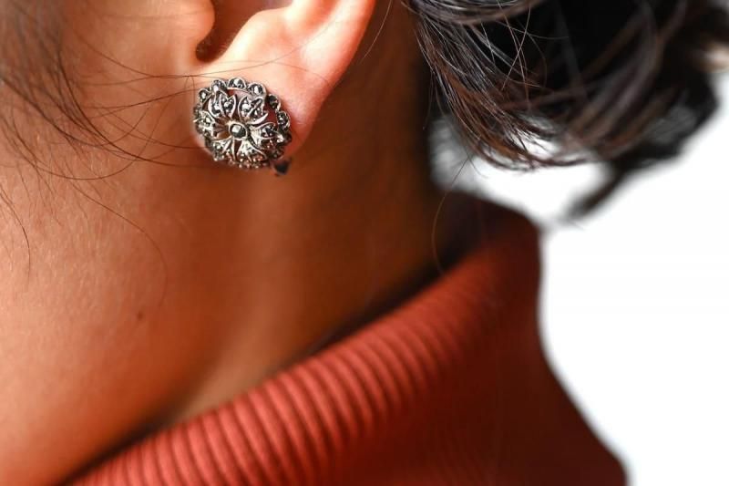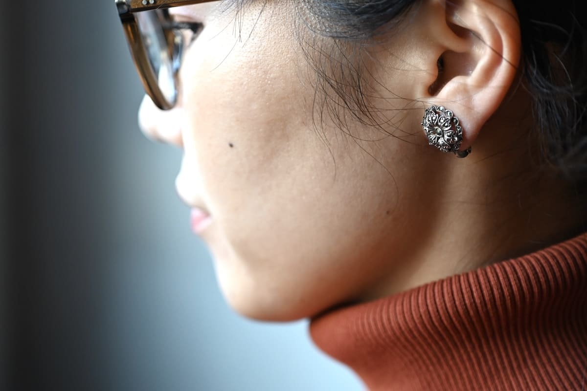マーカサイトを用いたクリップイヤリング。