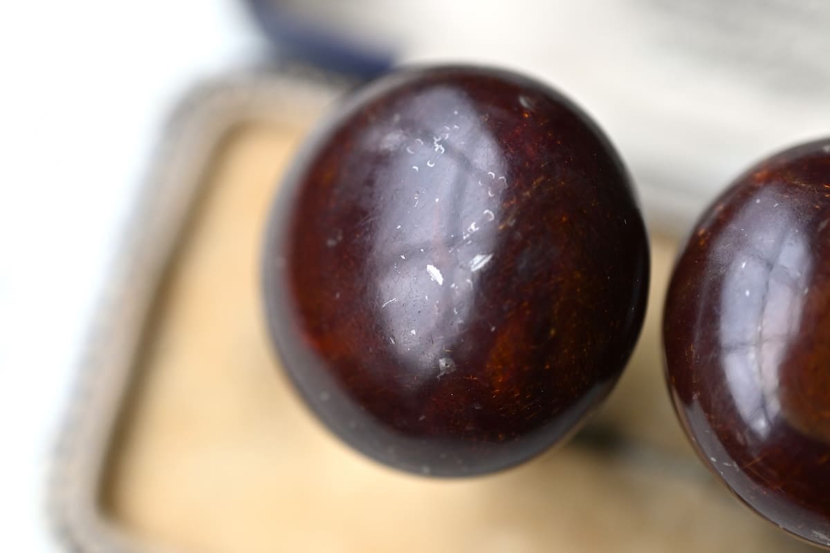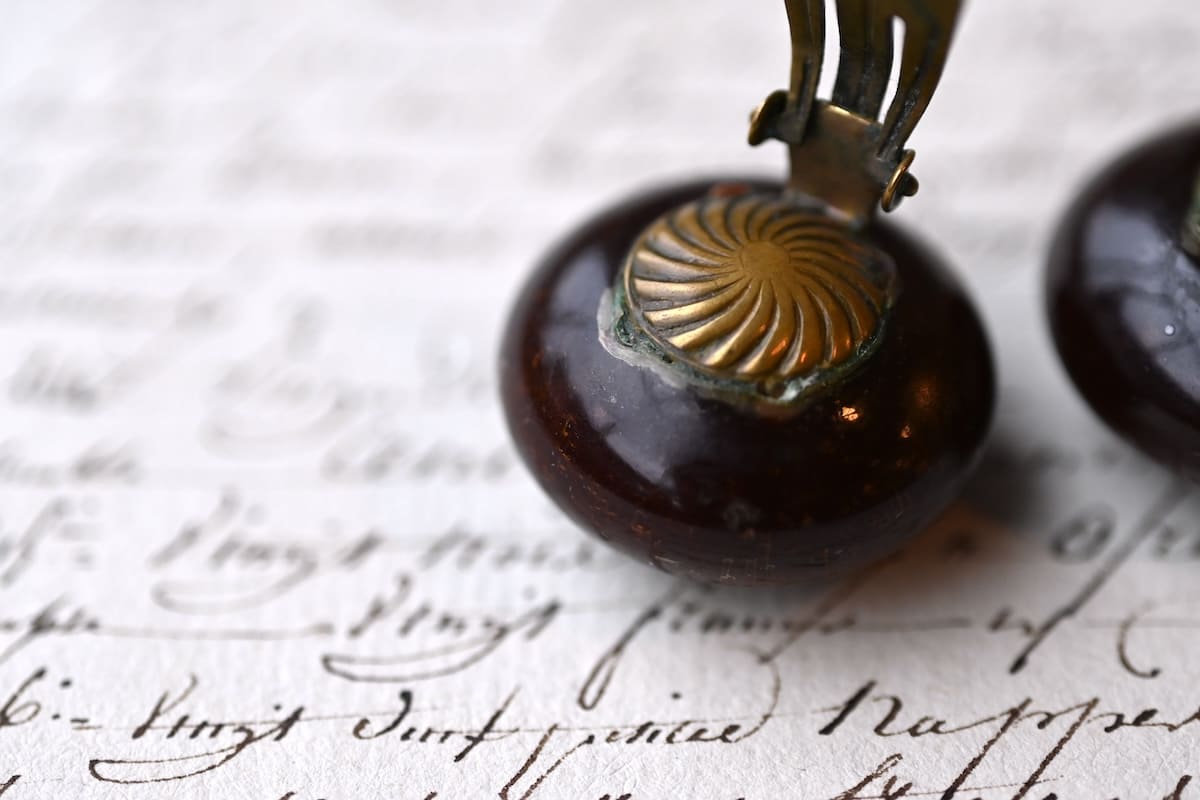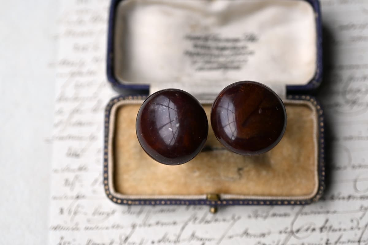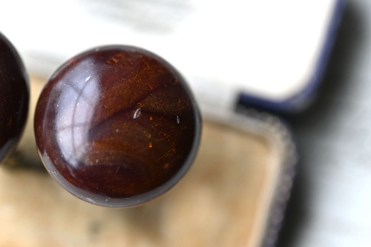 こっくりとしたブラウンカラーに、惑星を彷彿とさせるような、まだらな煌めきがあり、左右で印象の異なるところもオールドスタイルならではの、雰囲気がある一点です。