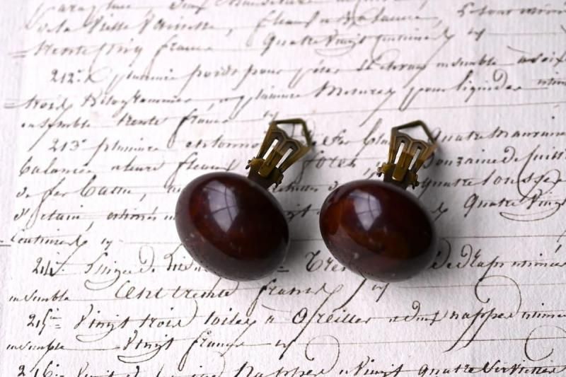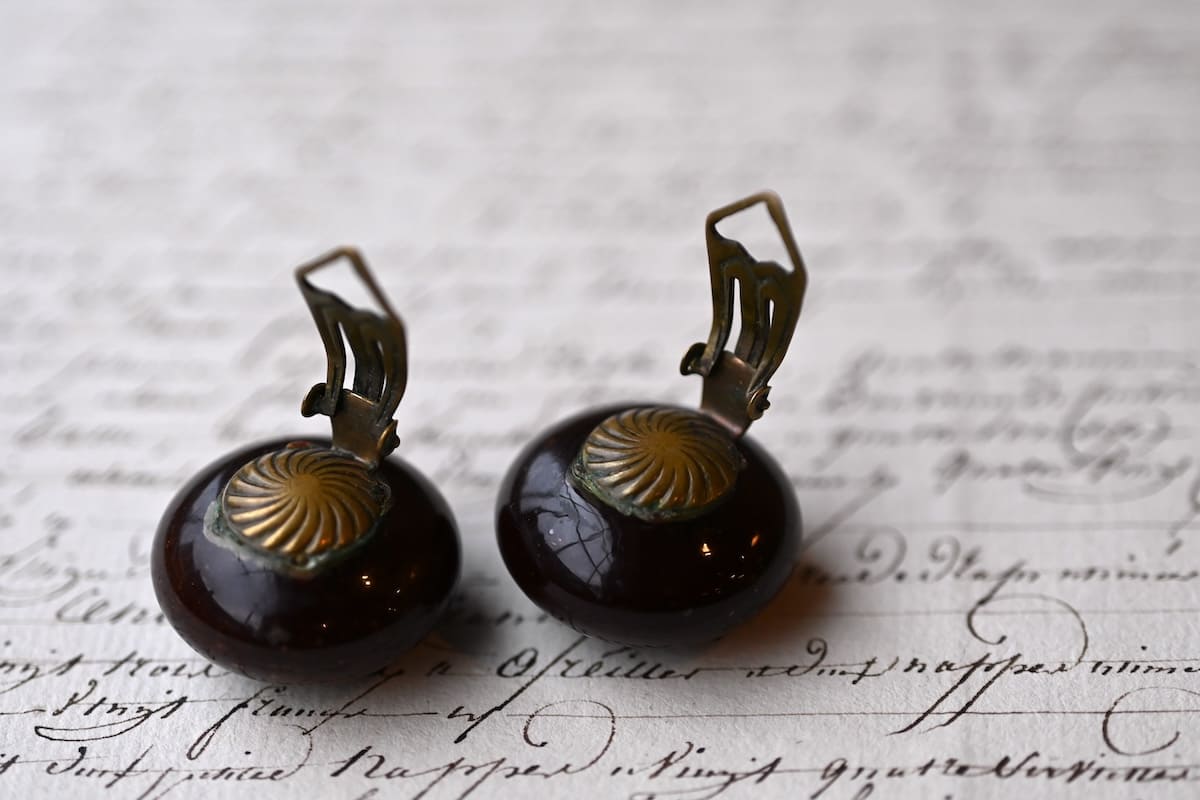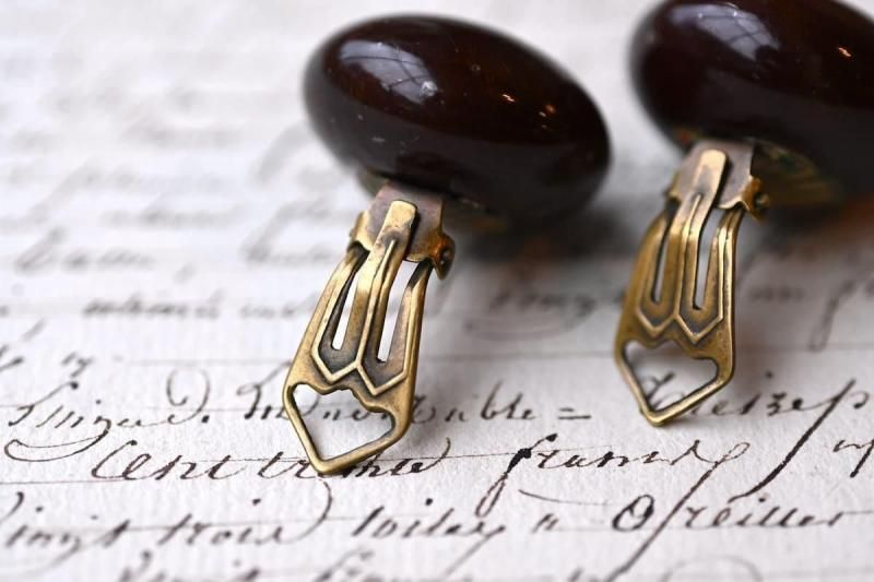 Brown Round Clip Earring ブラウン ラウンド クリップイヤリング