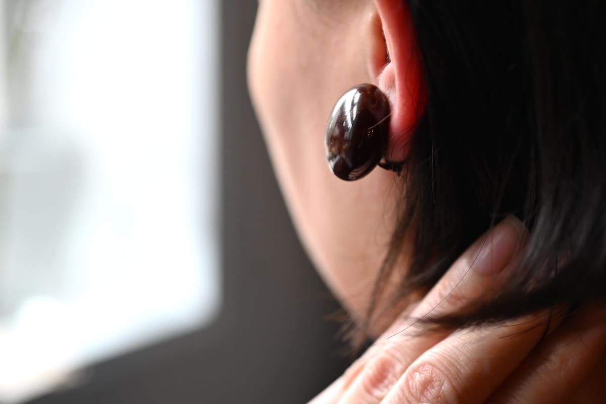 ぷっくりと厚みのある形が愛嬌のある、クリップイヤリング。