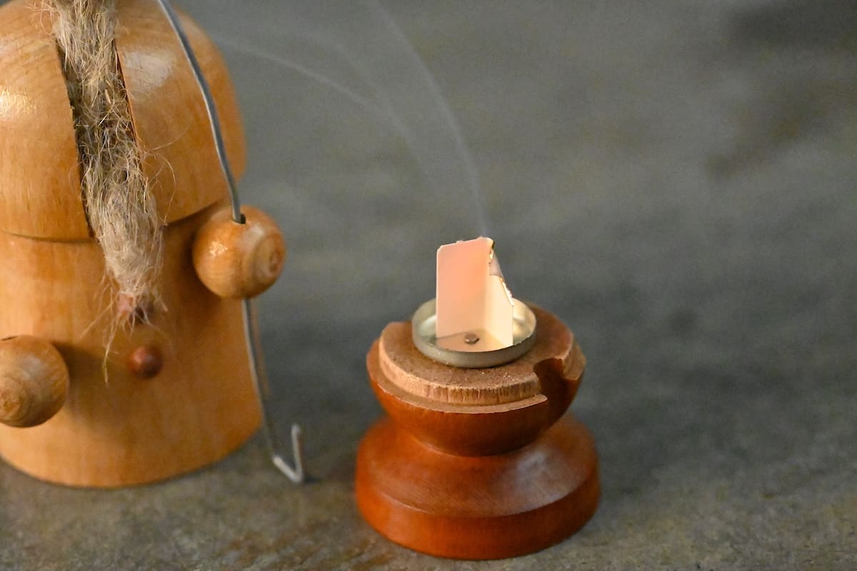 パイプ人形、煙吐き人形とも呼ばれる木製人形で、お香をお腹の中にセットし炊くと口からモクモクと煙が出てきます。