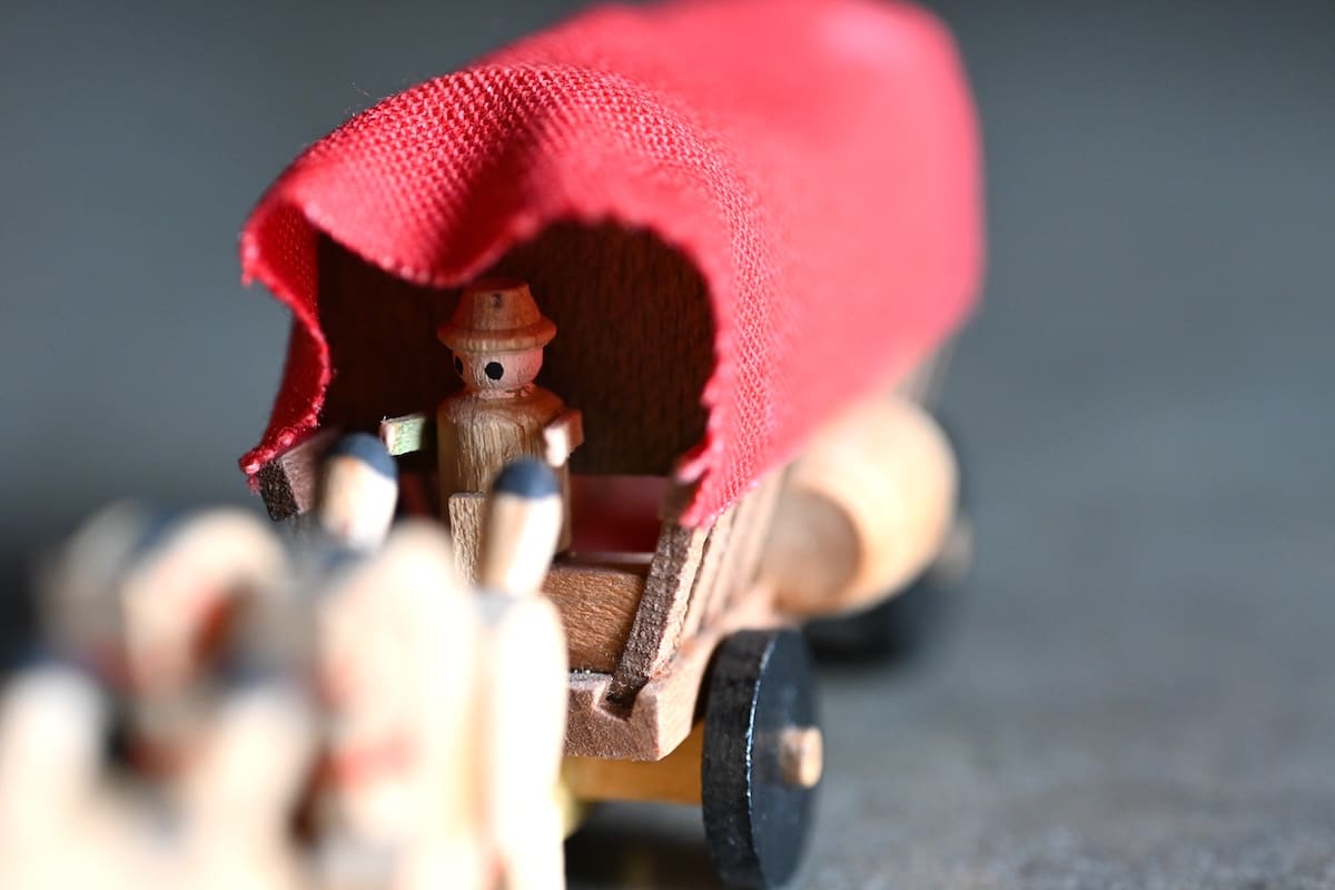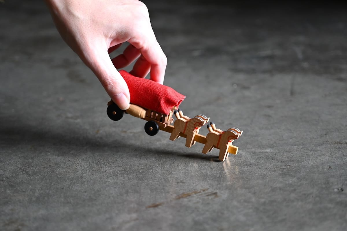 荷車に乗った人もミニチュアの可愛さが際立つ細やかな作り。