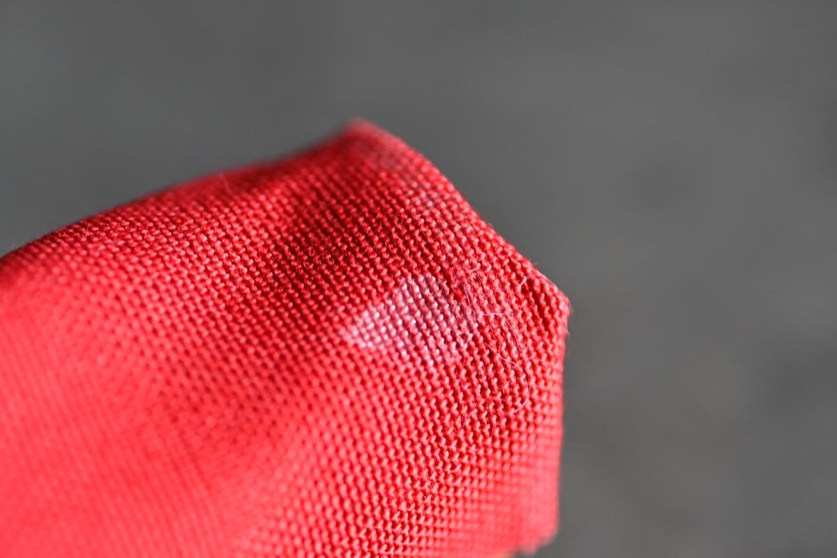 赤い布地に若干のペイント汚れがありますが、全体的に味わい深い一点です。